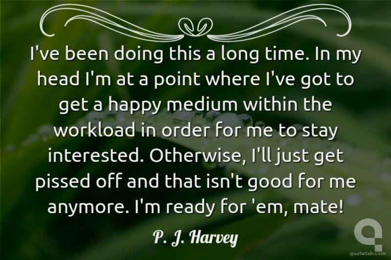 I've been doing this a long time. In my head I'm at a point where I've got to get a happy medium within the workload in order for me to stay interested. Otherwise, I'll just get pissed off and that isn't good for me anymore. I'm ready for 'em, mate!