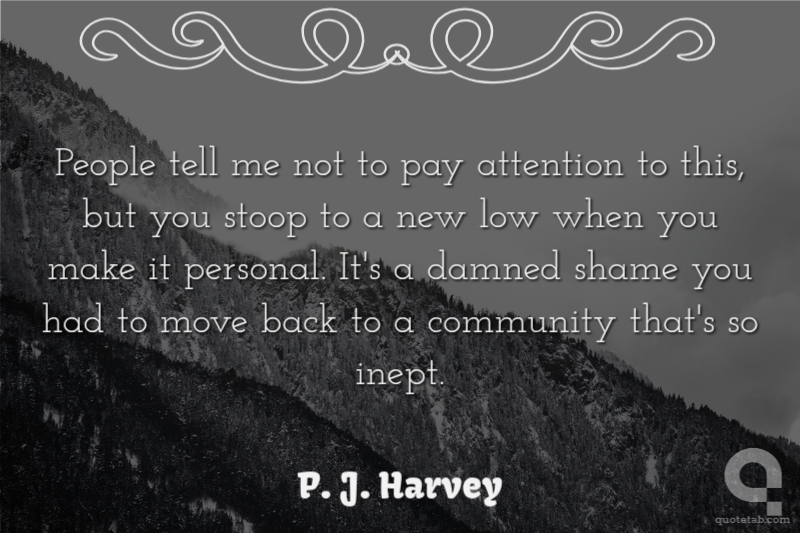 People tell me not to pay attention to this, but you stoop to a new low when you make it personal. It's a damned shame you had to move back to a community that's so inept.