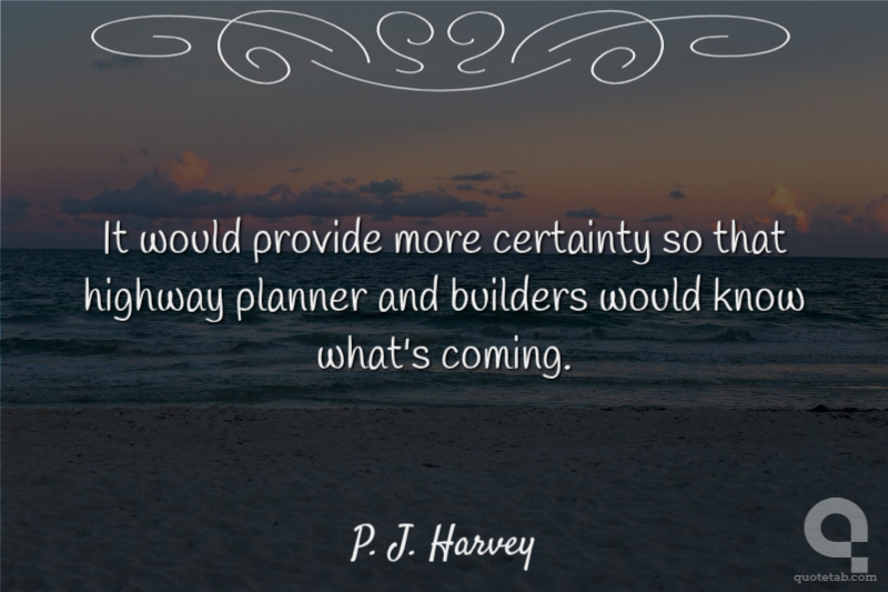 It would provide more certainty so that highway planner and builders would know what's coming.