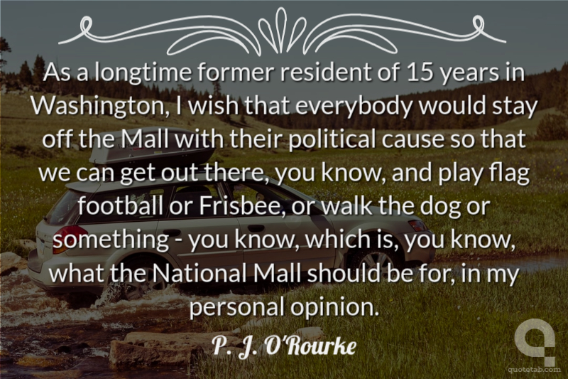 As a longtime former resident of 15 years in Washington, I wish that everybody would stay off the Mall with their political cause so that we can get out there, you know, and play flag football or Frisbee, or walk the dog or something - you know, which is, you know, what the National Mall should be for, in my personal opinion.