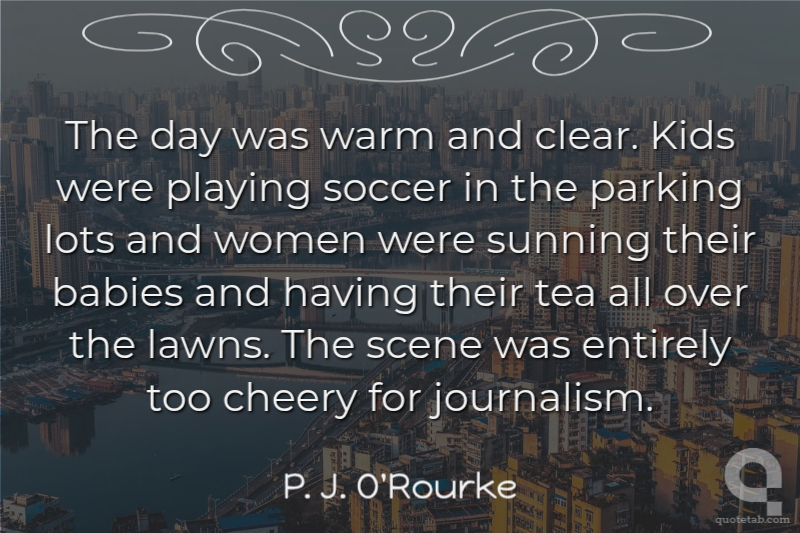 The day was warm and clear. Kids were playing soccer in the parking lots and women were sunning their babies and having their tea all over the lawns. The scene was entirely too cheery for journalism.