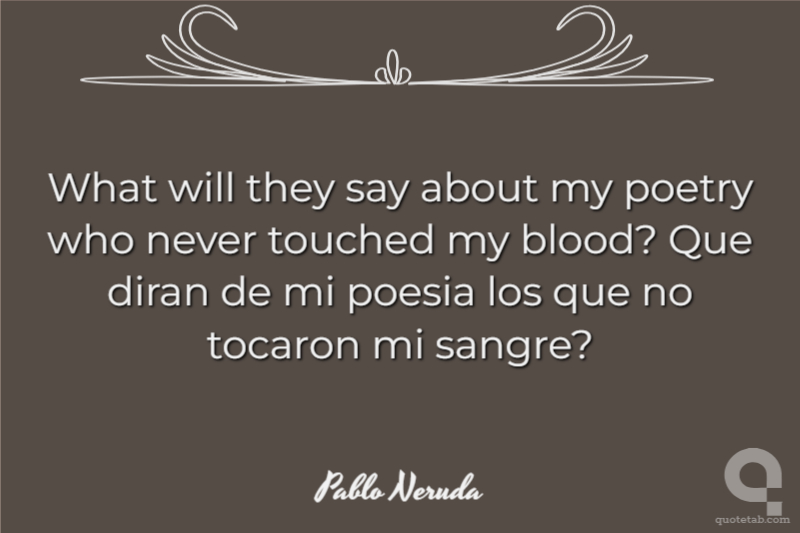 What will they say about my poetry who never touched my blood? Que diran de mi poesia los que no tocaron mi sangre?