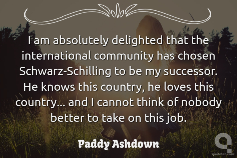 I am absolutely delighted that the international community has chosen Schwarz-Schilling to be my successor. He knows this country, he loves this country... and I cannot think of nobody better to take on this job.