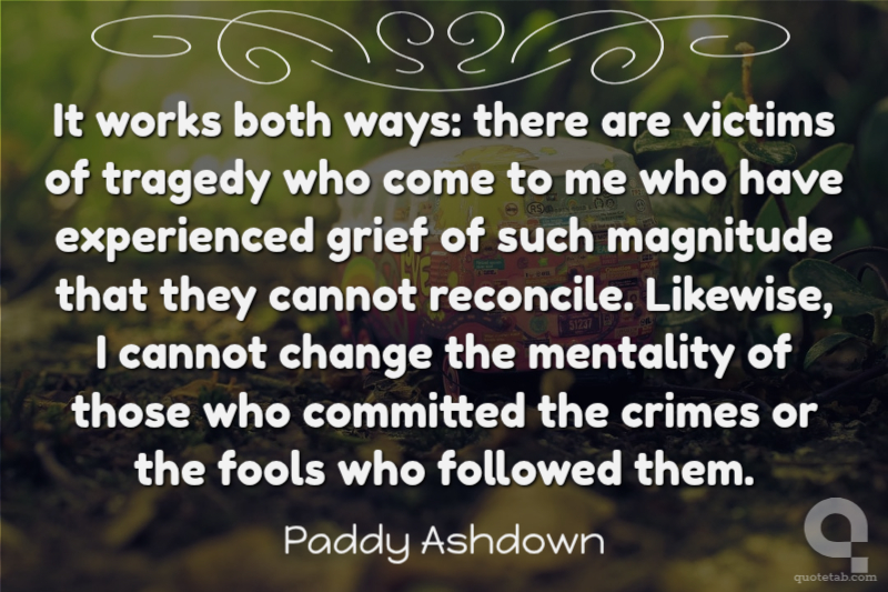 It works both ways: there are victims of tragedy who come to me who have experienced grief of such magnitude that they cannot reconcile. Likewise, I cannot change the mentality of those who committed the crimes or the fools who followed them.