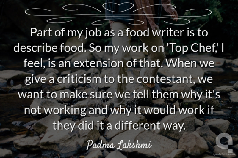 Part of my job as a food writer is to describe food. So my work on 'Top Chef,' I feel, is an extension of that. When we give a criticism to the contestant, we want to make sure we tell them why it's not working and why it would work if they did it a different way.