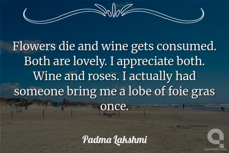 Flowers die and wine gets consumed. Both are lovely. I appreciate both. Wine and roses. I actually had someone bring me a lobe of foie gras once.