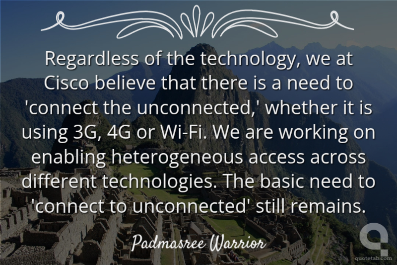 Regardless of the technology, we at Cisco believe that there is a need to 'connect the unconnected,' whether it is using 3G, 4G or Wi-Fi. We are working on enabling heterogeneous access across different technologies. The basic need to 'connect to unconnected' still remains.