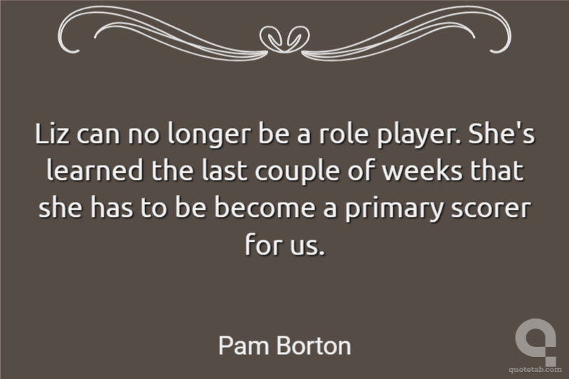 Liz can no longer be a role player. She's learned the last couple of weeks that she has to be become a primary scorer for us.