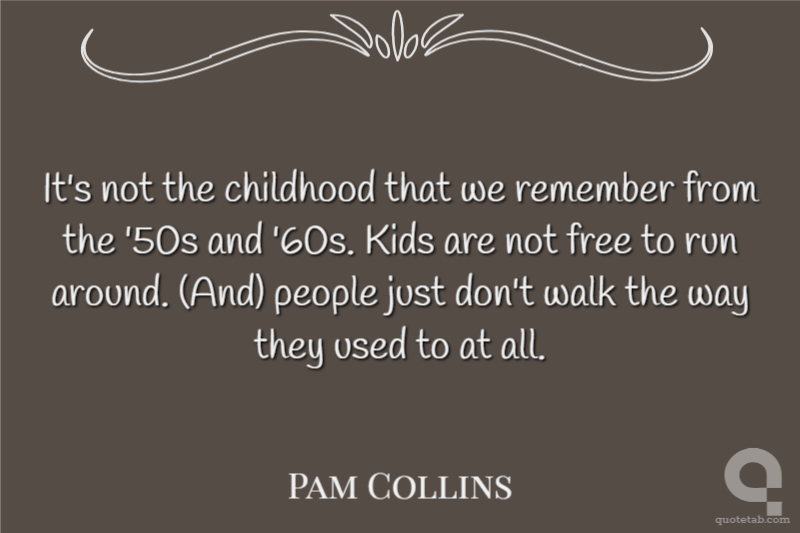 It's not the childhood that we remember from the '50s and '60s. Kids are not free to run around. (And) people just don't walk the way they used to at all.