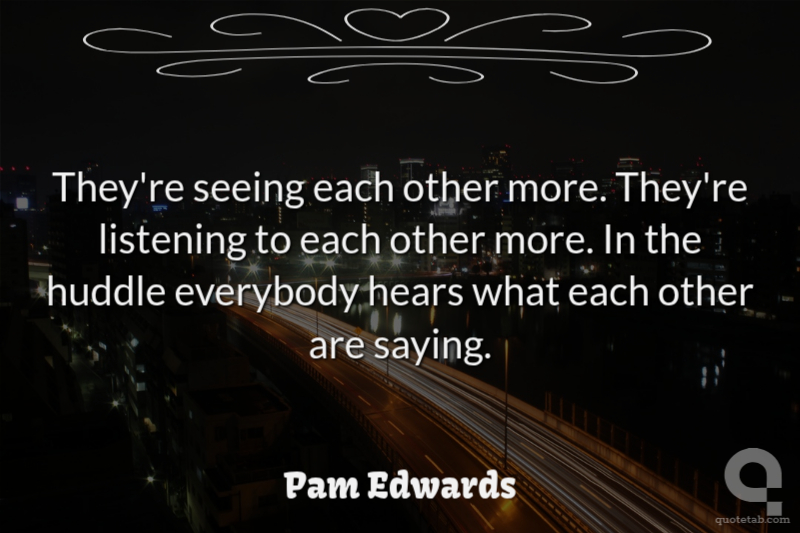 They're seeing each other more. They're listening to each other more. In the huddle everybody hears what each other are saying.