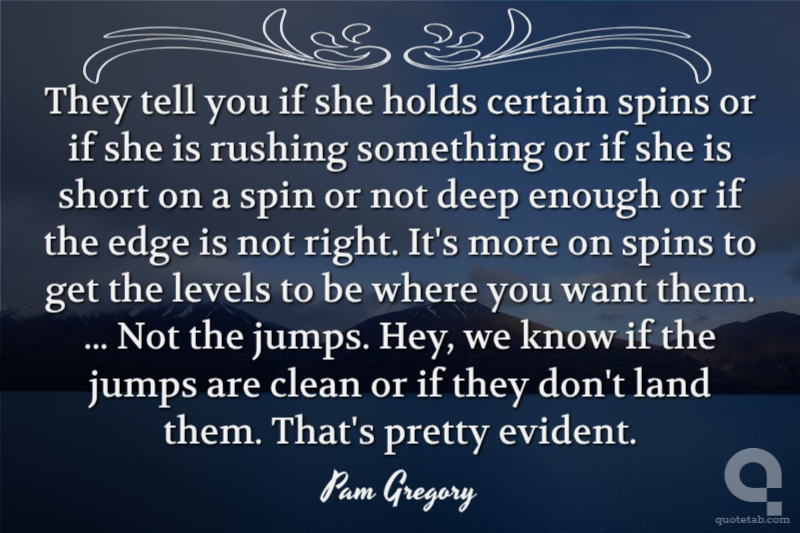 They tell you if she holds certain spins or if she is rushing something or if she is short on a spin or not deep enough or if the edge is not right. It's more on spins to get the levels to be where you want them. ... Not the jumps. Hey, we know if the jumps are clean or if they don't land them. That's pretty evident.