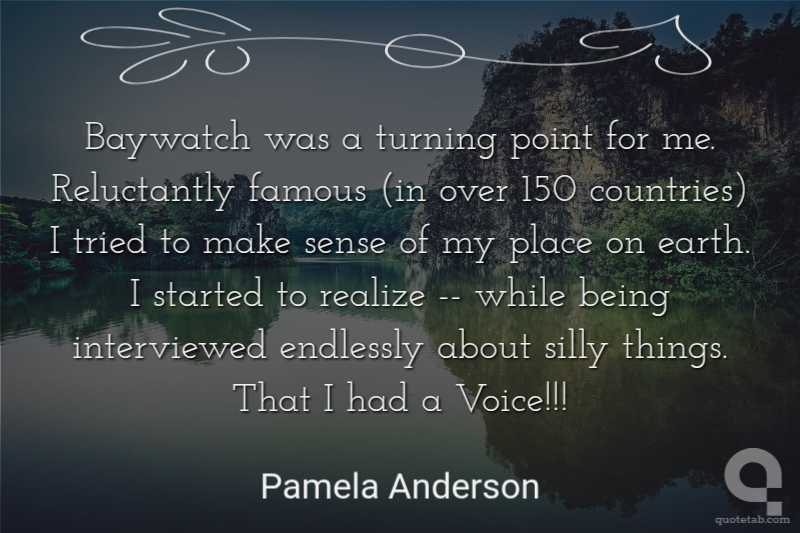 Baywatch was a turning point for me. Reluctantly famous (in over 150 countries) I tried to make sense of my place on earth. I started to realize -- while being interviewed endlessly about silly things. That I had a Voice!!!