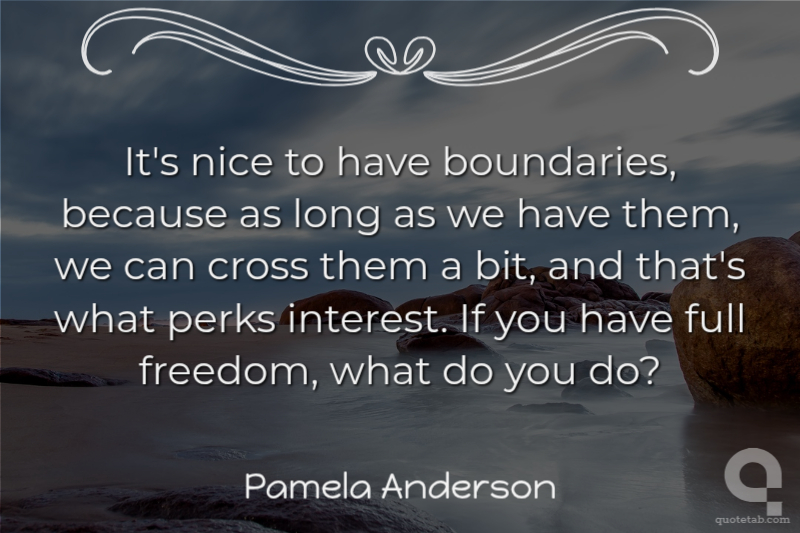 It's nice to have boundaries, because as long as we have them, we can cross them a bit, and that's what perks interest. If you have full freedom, what do you do?