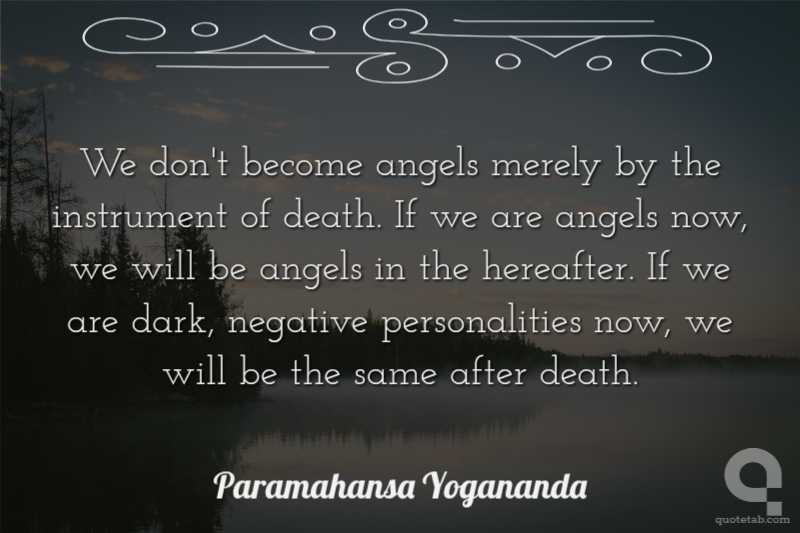 We don't become angels merely by the instrument of death. If we are angels now, we will be angels in the hereafter. If we are dark, negative personalities now, we will be the same after death.