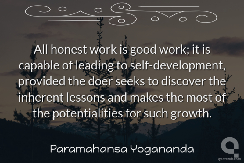 All honest work is good work; it is capable of leading to self-development, provided the doer seeks to discover the inherent lessons and makes the most of the potentialities for such growth.