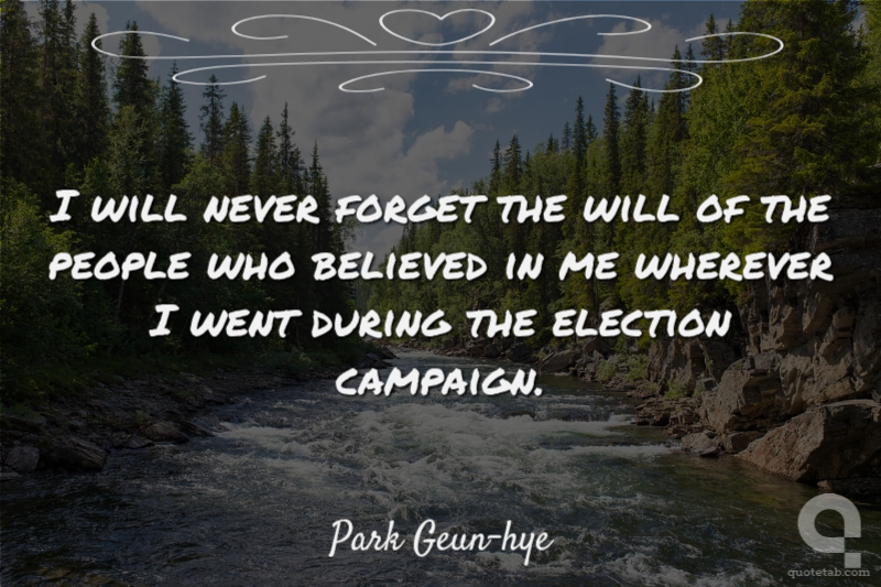 I will never forget the will of the people who believed in me wherever I went during the election campaign.