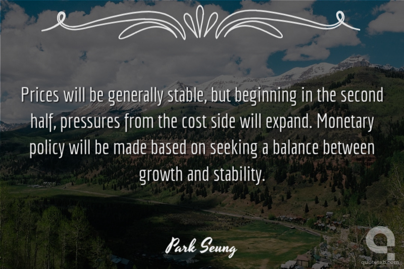 Prices will be generally stable, but beginning in the second half, pressures from the cost side will expand. Monetary policy will be made based on seeking a balance between growth and stability.