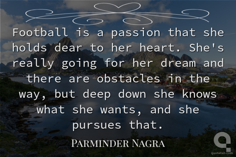 Football is a passion that she holds dear to her heart. She's really going for her dream and there are obstacles in the way, but deep down she knows what she wants, and she pursues that.