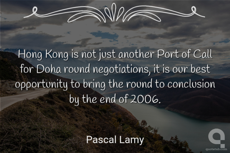 Hong Kong is not just another Port of Call for Doha round negotiations, it is our best opportunity to bring the round to conclusion by the end of 2006.