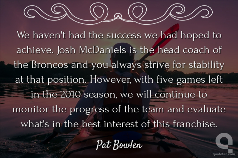 We haven't had the success we had hoped to achieve. Josh McDaniels is the head coach of the Broncos and you always strive for stability at that position. However, with five games left in the 2010 season, we will continue to monitor the progress of the team and evaluate what's in the best interest of this franchise.