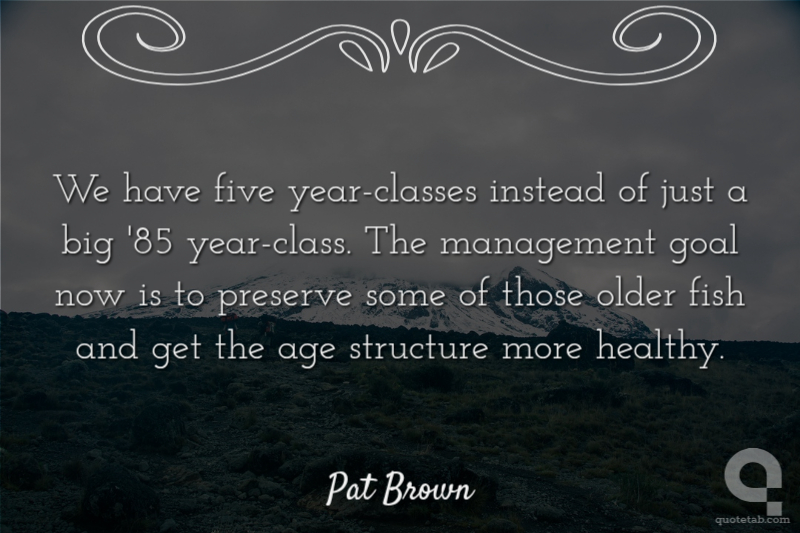 We have five year-classes instead of just a big '85 year-class. The management goal now is to preserve some of those older fish and get the age structure more healthy.