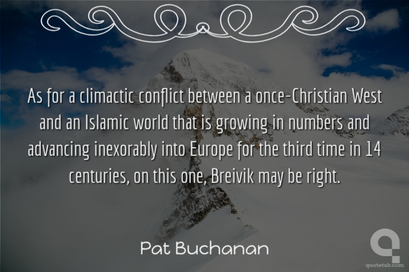As for a climactic conflict between a once-Christian West and an Islamic world that is growing in numbers and advancing inexorably into Europe for the third time in 14 centuries, on this one, Breivik may be right.