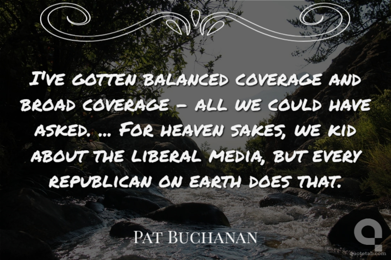 I've gotten balanced coverage and broad coverage - all we could have asked. ... For heaven sakes, we kid about the liberal media, but every republican on earth does that.