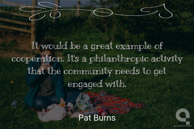 It would be a great example of cooperation. It's a philanthropic activity that the community needs to get engaged with.