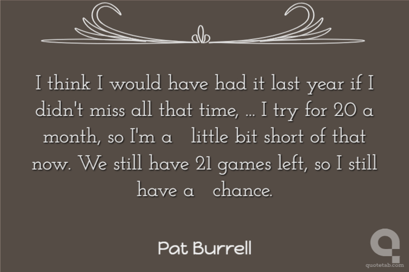 I think I would have had it last year if I didn't miss all that time, ... I try for 20 a month, so I'm a little bit short of that now. We still have 21 games left, so I still have a chance.