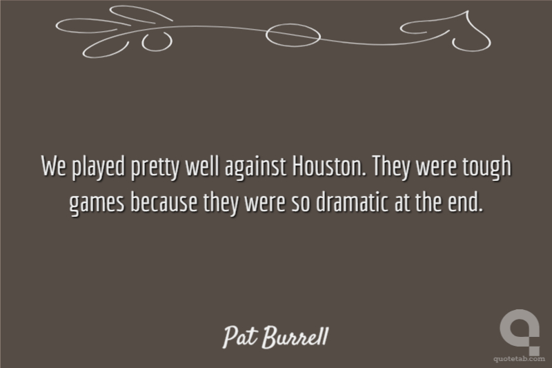 We played pretty well against Houston. They were tough games because they were so dramatic at the end.