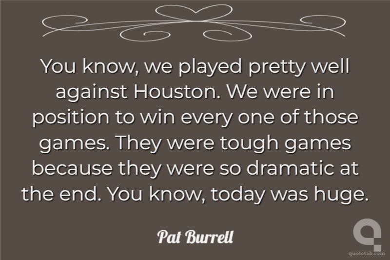 You know, we played pretty well against Houston. We were in position to win every one of those games. They were tough games because they were so dramatic at the end. You know, today was huge.