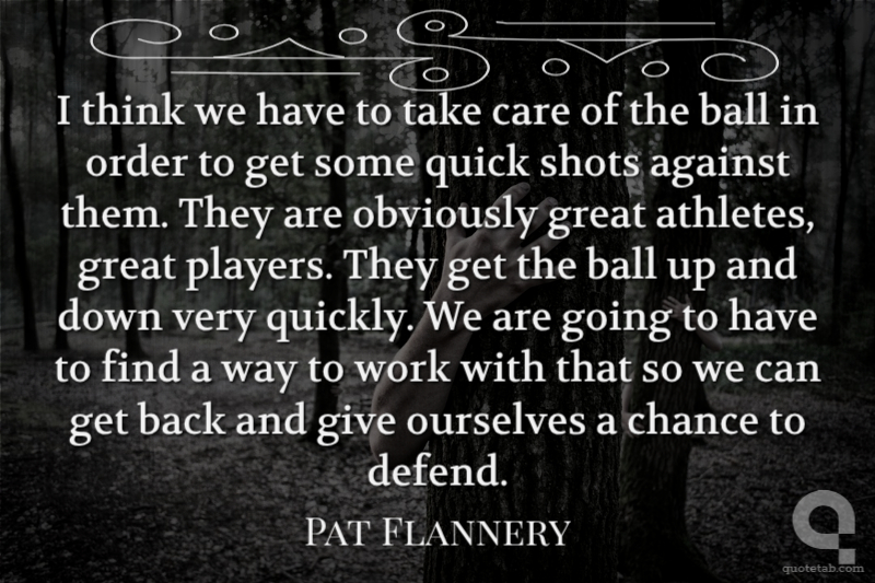 I think we have to take care of the ball in order to get some quick shots against them. They are obviously great athletes, great players. They get the ball up and down very quickly. We are going to have to find a way to work with that so we can get back and give ourselves a chance to defend.