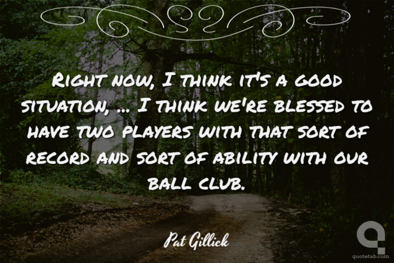 Right now, I think it's a good situation, ... I think we're blessed to have two players with that sort of record and sort of ability with our ball club.