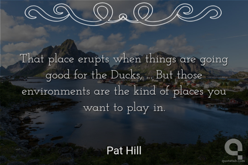 That place erupts when things are going good for the Ducks, ... But those environments are the kind of places you want to play in.