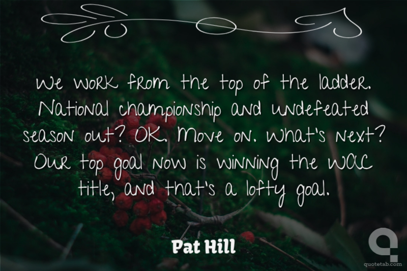 We work from the top of the ladder. National championship and undefeated season out? OK. Move on. What's next? Our top goal now is winning the WAC title, and that's a lofty goal.