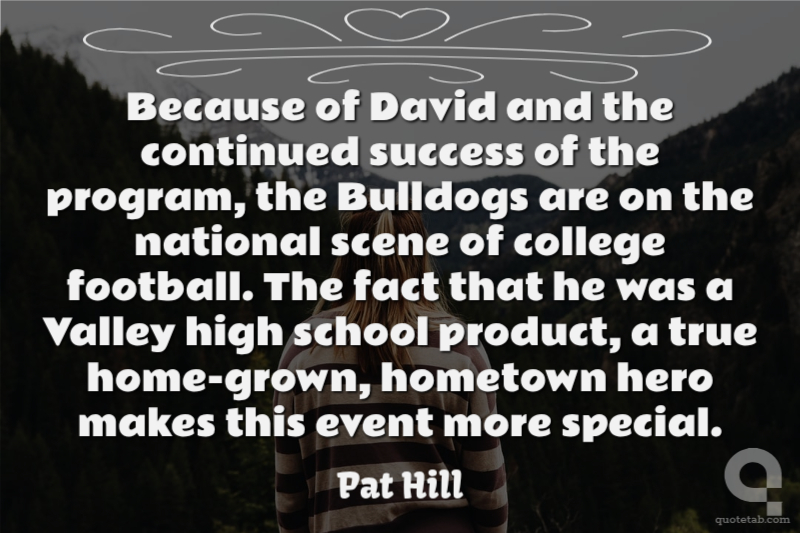 Because of David and the continued success of the program, the Bulldogs are on the national scene of college football. The fact that he was a Valley high school product, a true home-grown, hometown hero makes this event more special.