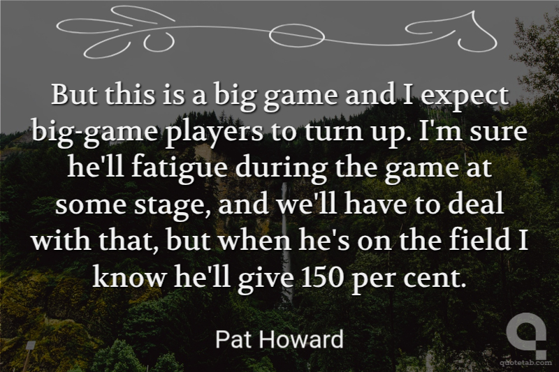 But this is a big game and I expect big-game players to turn up. I'm sure he'll fatigue during the game at some stage, and we'll have to deal with that, but when he's on the field I know he'll give 150 per cent.