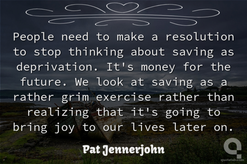 People need to make a resolution to stop thinking about saving as deprivation. It's money for the future. We look at saving as a rather grim exercise rather than realizing that it's going to bring joy to our lives later on.