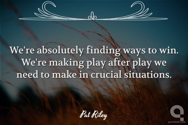 We're absolutely finding ways to win. We're making play after play we need to make in crucial situations.