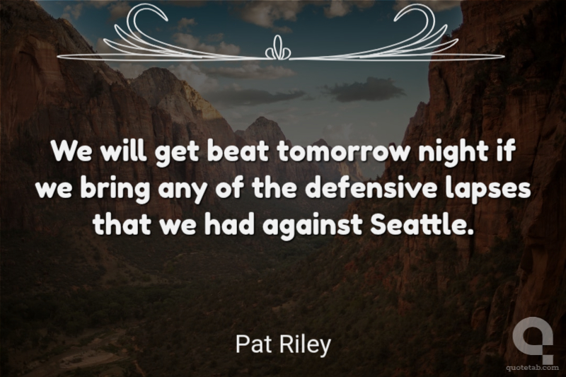 We will get beat tomorrow night if we bring any of the defensive lapses that we had against Seattle.