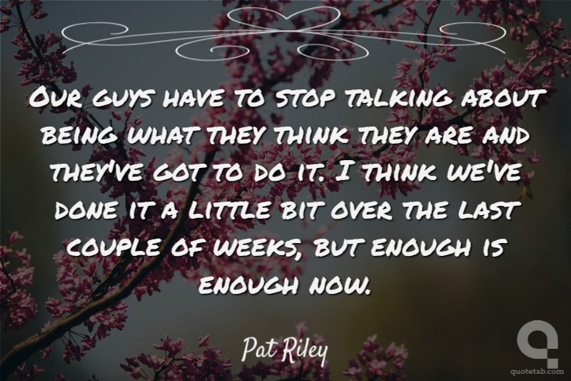 Our guys have to stop talking about being what they think they are and they've got to do it. I think we've done it a little bit over the last couple of weeks, but enough is enough now.