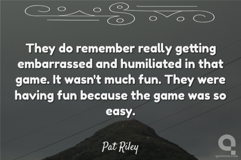 They do remember really getting embarrassed and humiliated in that game. It wasn't much fun. They were having fun because the game was so easy.