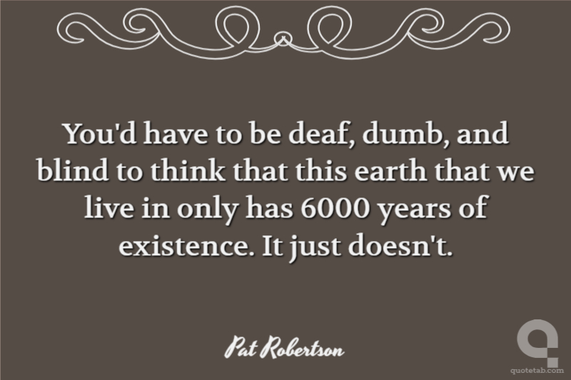 You'd have to be deaf, dumb, and blind to think that this earth that we live in only has 6000 years of existence. It just doesn't.