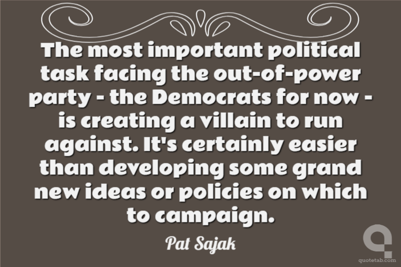 The most important political task facing the out-of-power party - the Democrats for now - is creating a villain to run against. It's certainly easier than developing some grand new ideas or policies on which to campaign.