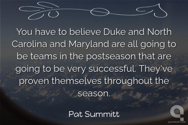 You have to believe Duke and North Carolina and Maryland are all going to be teams in the postseason that are going to be very successful. They've proven themselves throughout the season.