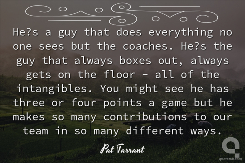He?s a guy that does everything no one sees but the coaches. He?s the guy that always boxes out, always gets on the floor - all of the intangibles. You might see he has three or four points a game but he makes so many contributions to our team in so many different ways.
