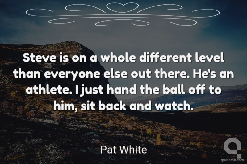 Steve is on a whole different level than everyone else out there. He's an athlete. I just hand the ball off to him, sit back and watch.
