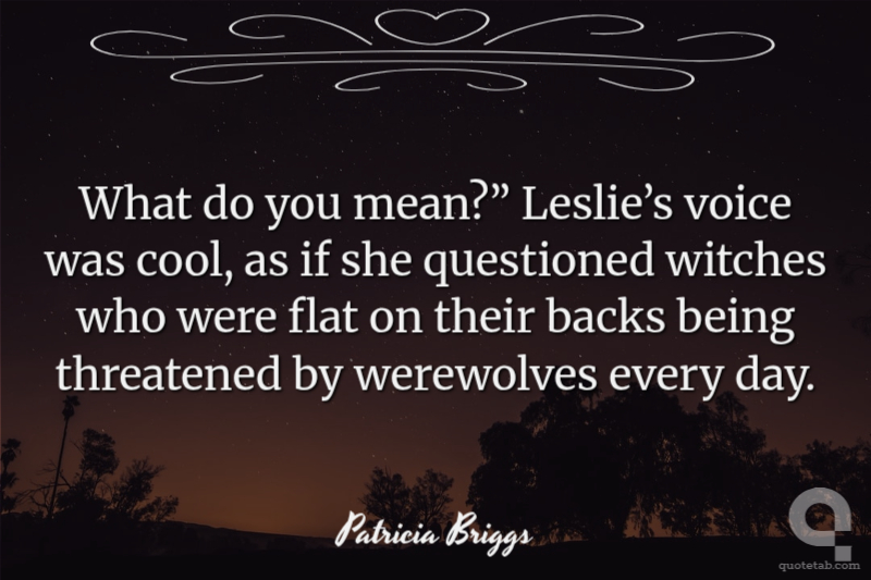 What do you mean?” Leslie’s voice was cool, as if she questioned witches who were flat on their backs being threatened by werewolves every day.