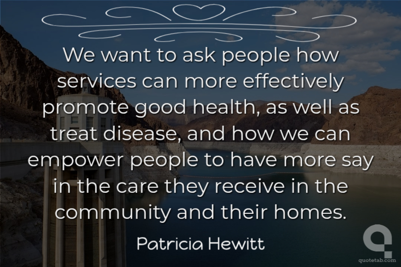 We want to ask people how services can more effectively promote good health, as well as treat disease, and how we can empower people to have more say in the care they receive in the community and their homes.