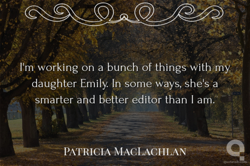 I'm working on a bunch of things with my daughter Emily. In some ways, she's a smarter and better editor than I am.